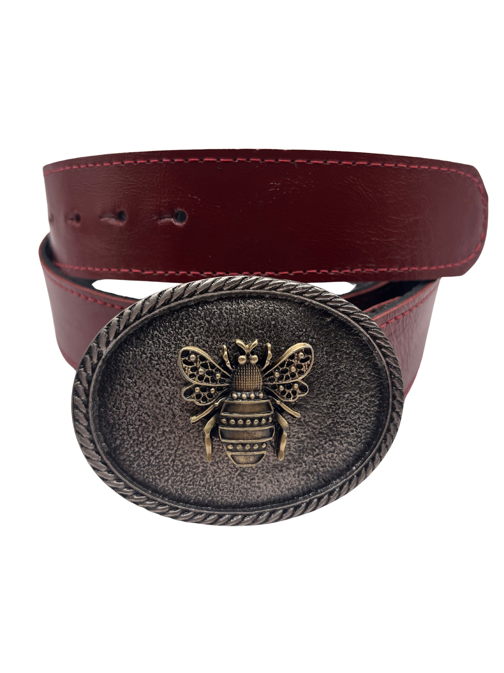 El cinturón Beetle Escarlata destaca por su cuero rojo de textura firme y vibrante, acompañado de una hebilla en forma de escarabajo metálico que aporta un aire místico y sofisticado. Ideal para elevar cualquier look con personalidad y estilo 🐞