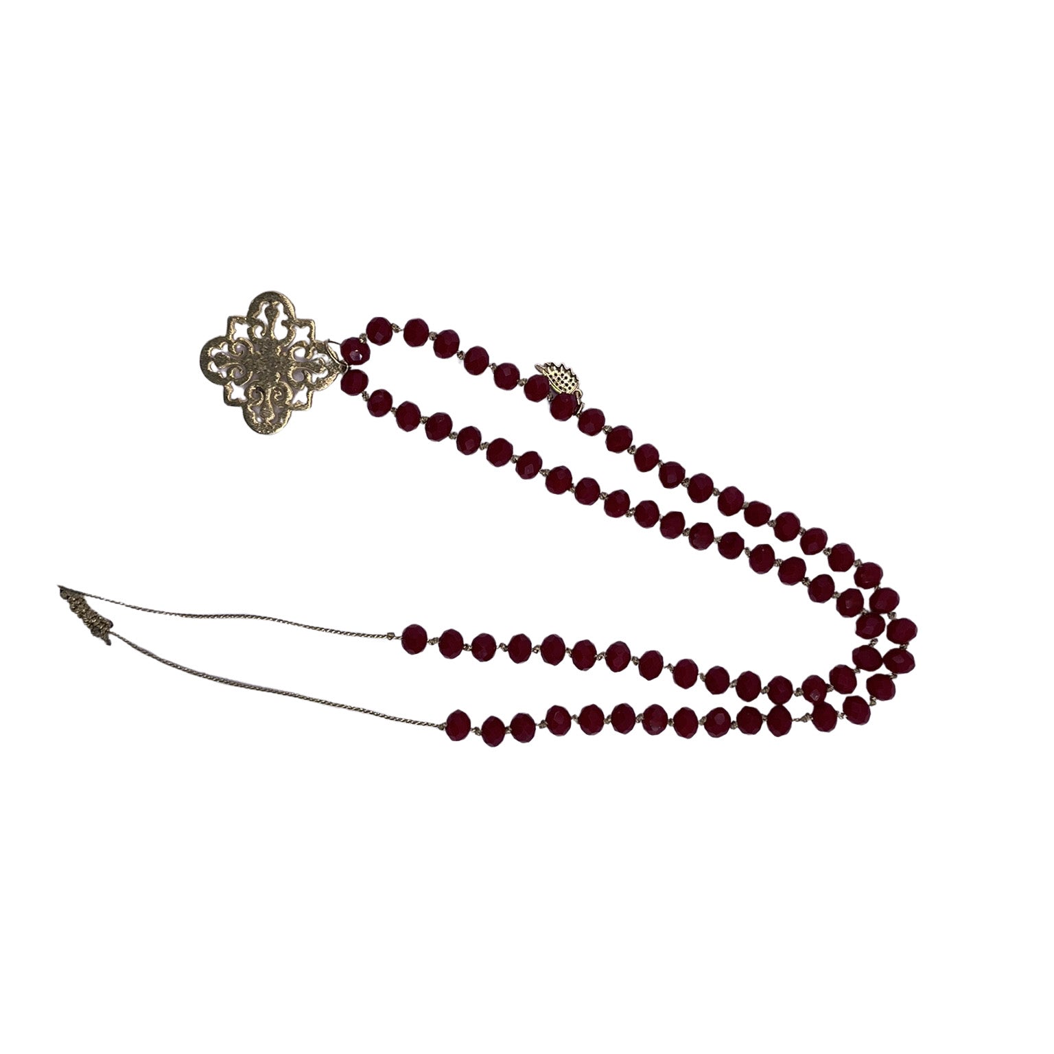 Dale un toque de sofisticación a tu look con Aurora de Rubí: un collar de fantasía rojo con detalles dorados que captura todas las miradas 💖