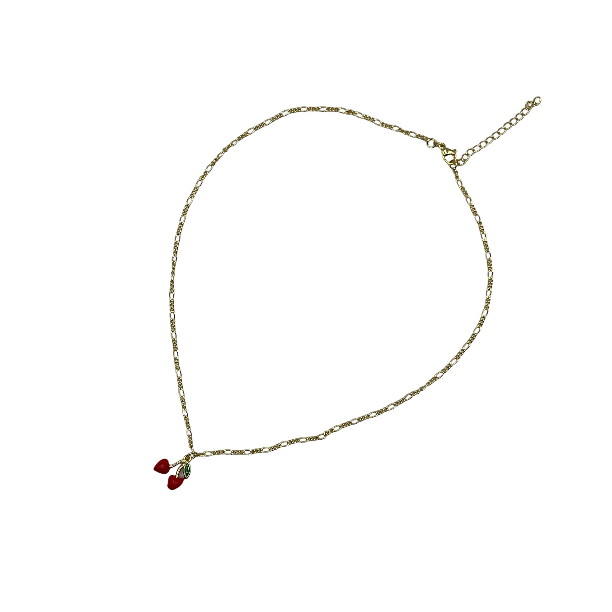 Collar bañado en oro 18k con un delicado colgante de cereza, ideal para usarlo solo o combinado con un collar Gold 💖