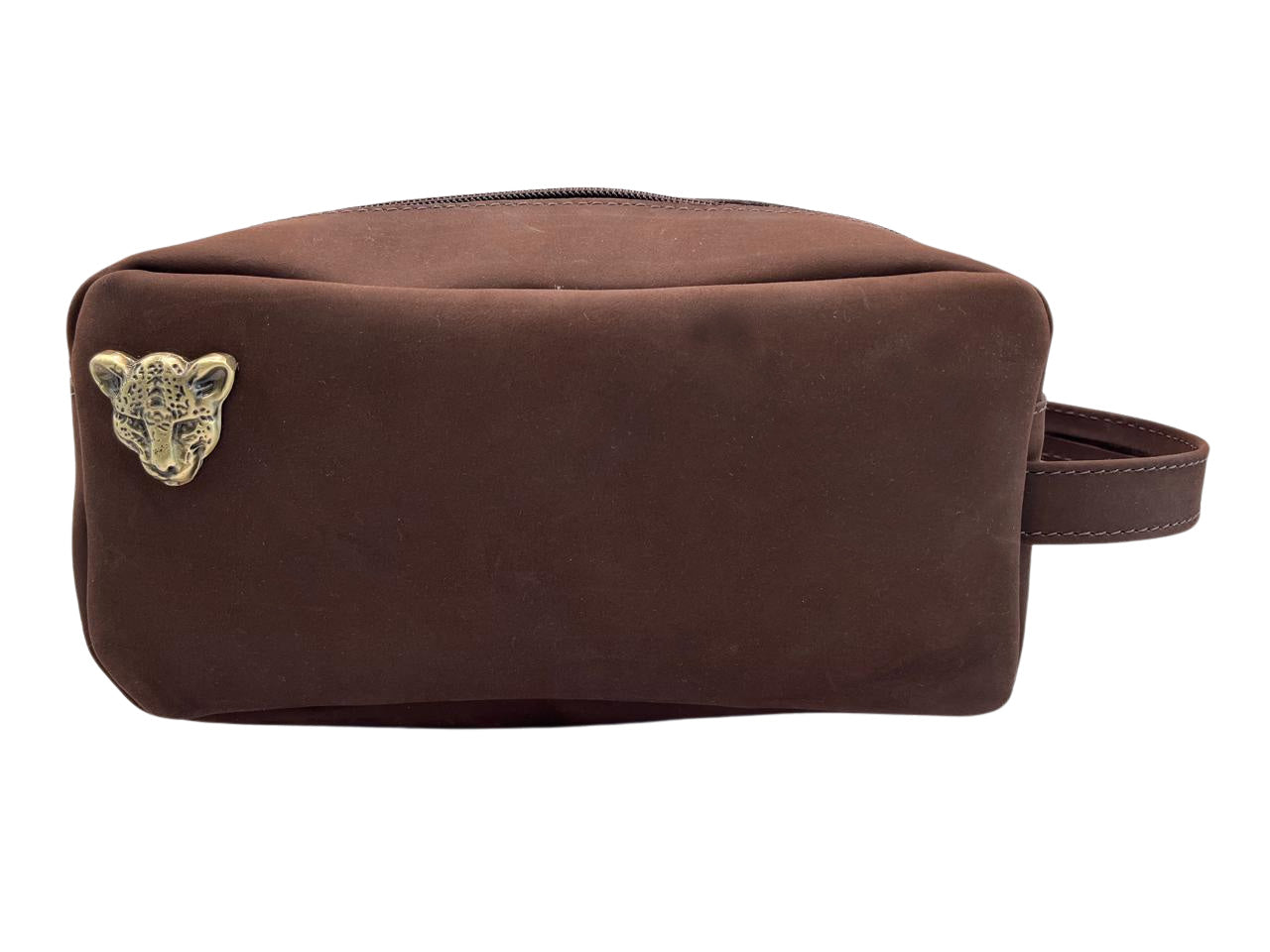 Este cosmetiquero de cuero café genuino con aplicación de leopardo combina diseño atemporal con funcionalidad diaria. Ideal para organizar tus esenciales de belleza o cuidado personal, su interior espacioso lo hacen perfecto tanto para llevar en la cartera como en viajes.