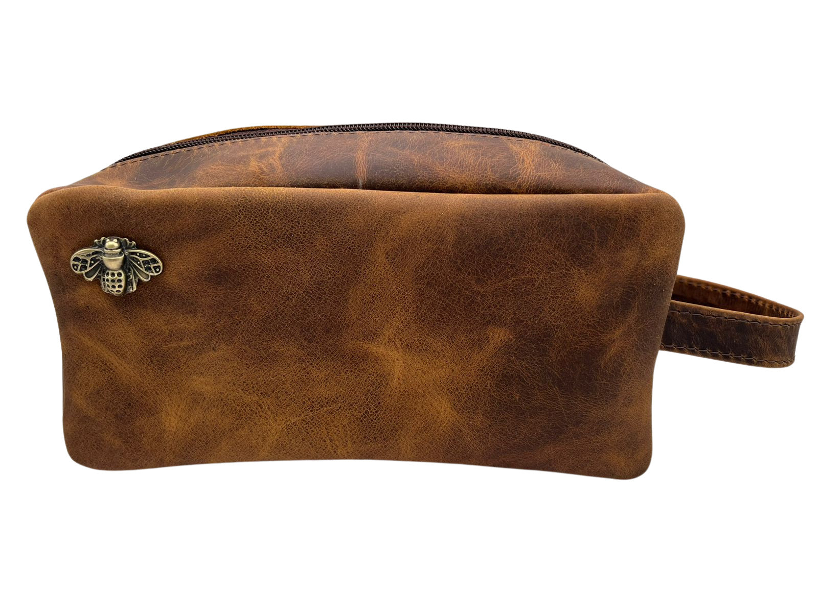 Este cosmetiquero de cuero café genuino con aplicación de leopardo combina diseño atemporal con funcionalidad diaria. Ideal para organizar tus esenciales de belleza o cuidado personal, su interior espacioso lo hacen perfecto tanto para llevar en la cartera como en viajes.
