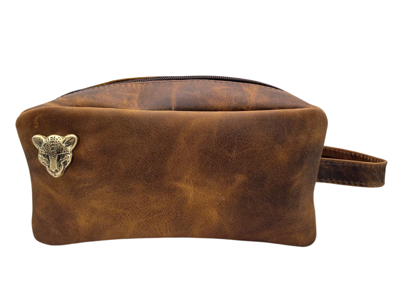 Este cosmetiquero de cuero café genuino con aplicación de leopardo combina diseño atemporal con funcionalidad diaria. Ideal para organizar tus esenciales de belleza o cuidado personal, su interior espacioso lo hacen perfecto tanto para llevar en la cartera como en viajes.