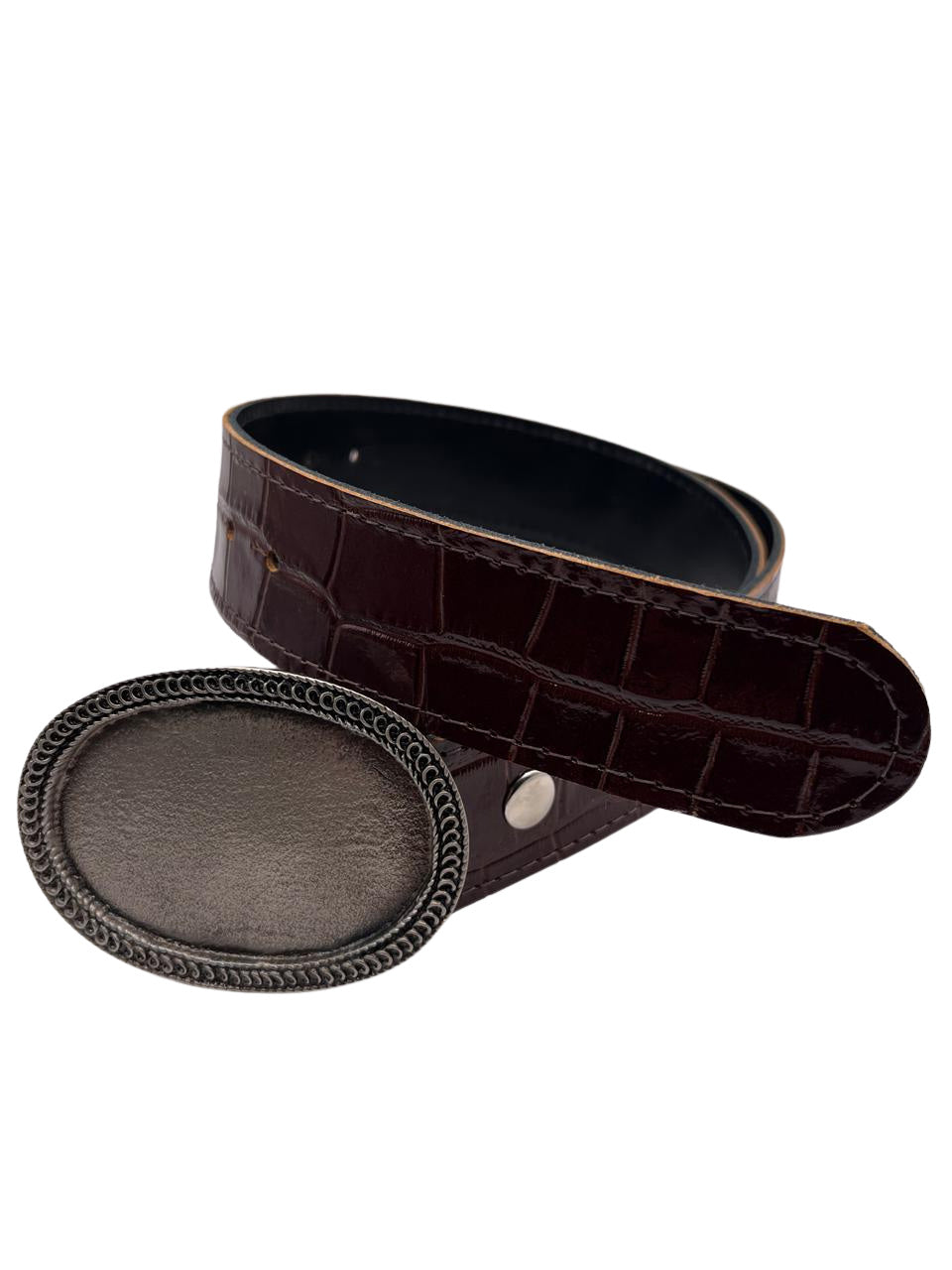 Cinturón que combina la textura exótica del cuero tipo caimán con la elegancia de una hebilla plateada minimalista. Sofisticación en su forma más salvaje 🐊