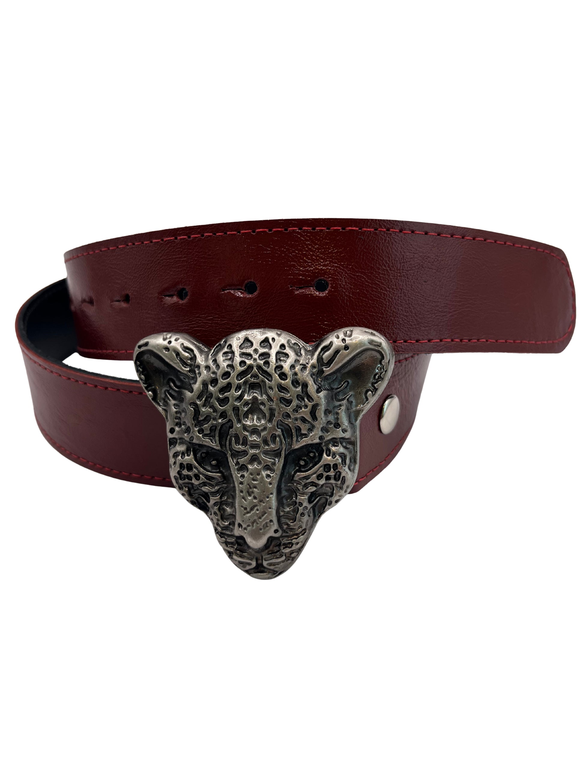 Un cinturón que cautiva a primera vista. El cuero rojo intenso, inspirado en el color de una rosa , se une a una hebilla de leopardo, creando una pieza llena de romanticismo. Perfecto para elevar cualquier look con un toque de pasión y elegancia 🌹