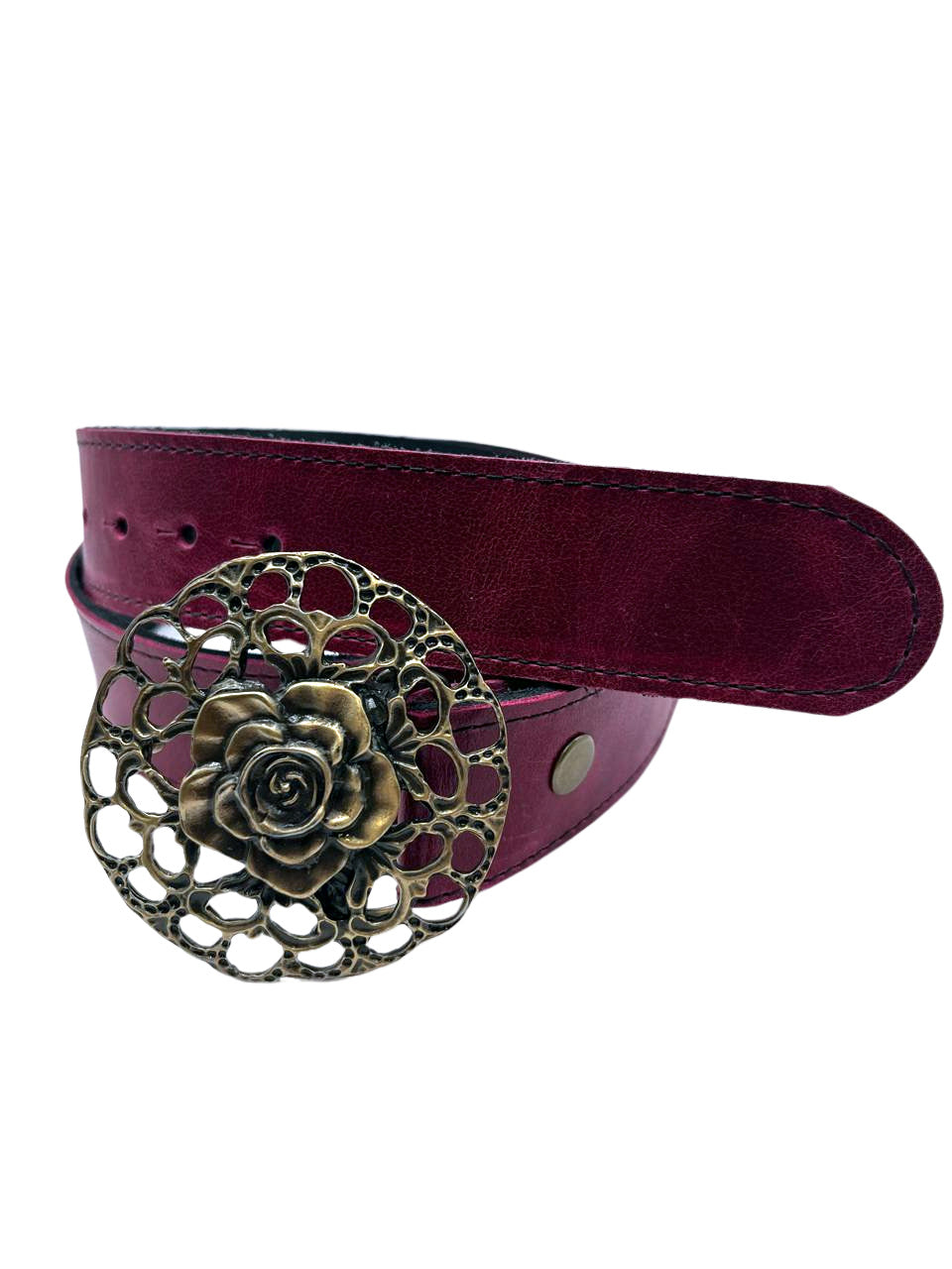 - Cuero genuino de alta calidad en tono bordó pasión. Ancho 3,8 cm